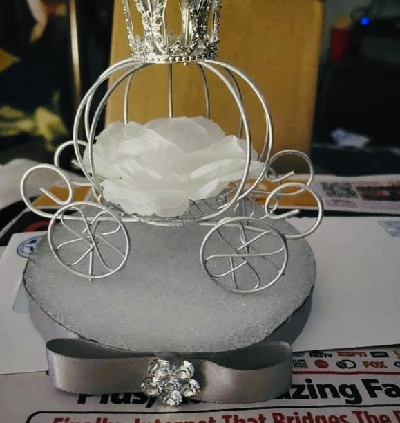 Make their Event a Fairytale with this white Cinderella carriage holder. Not only will you take their breath away with this one of a kind showpiece, you will be providing them with something that can be used over and over for their future events and also have as a keepsake to remember all of their special occasions.