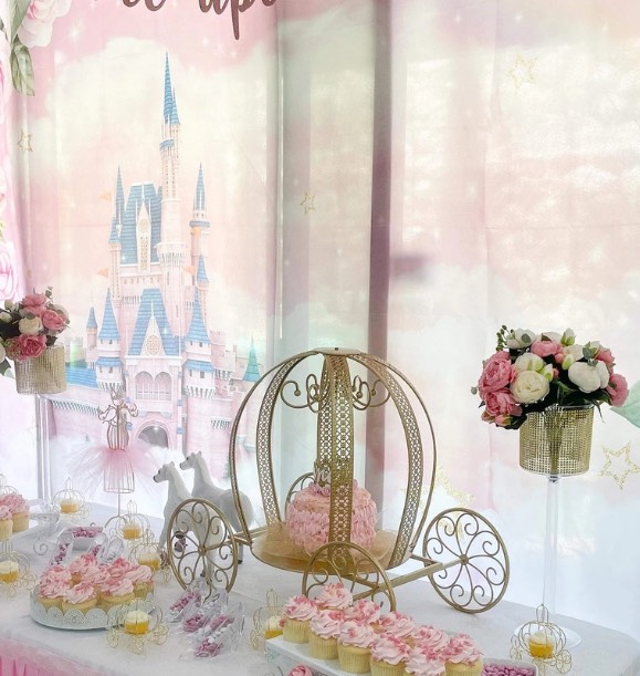 Turn their Event into a Fairytale Celebration with this Cinderella party set. Not only will you take their breath away with this one of a kind showpiece, you will be providing them with something that they can use over and over for their future events and also have as a keepsake to remember all of their special occasions.