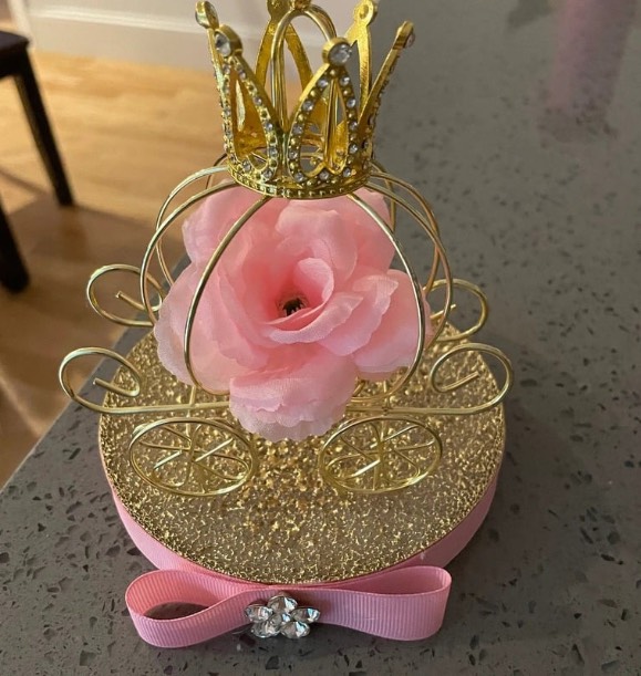 Make their Event a Fairytale with this white Cinderella carriage holder. Not only will you take their breath away with this one of a kind showpiece, you will be providing them with something that can be used over and over for their future events and also have as a keepsake to remember all of their special occasions.