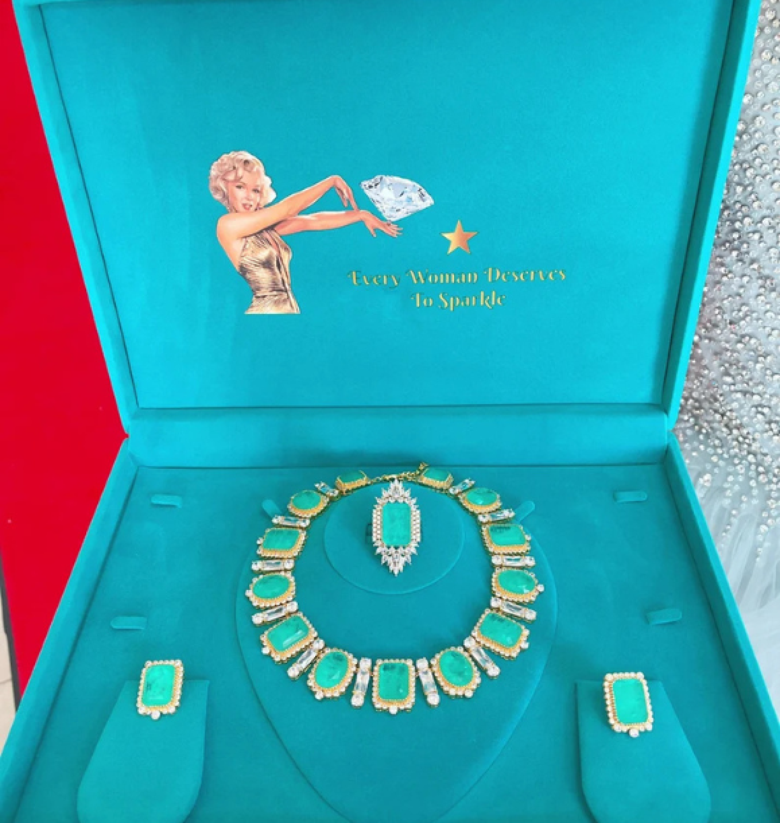 Set the stage a magical day or night with this dazzling natural green columbian emerald diamond set with a platinum setting. Austrian crystals are often called "simulated diamonds" since they so closely resemble diamonds. Truly a breathtaking showpiece embodying the popular Baroque style. Whether a meaningful gift or well deserved self splurge, it's guaranteed to impress!