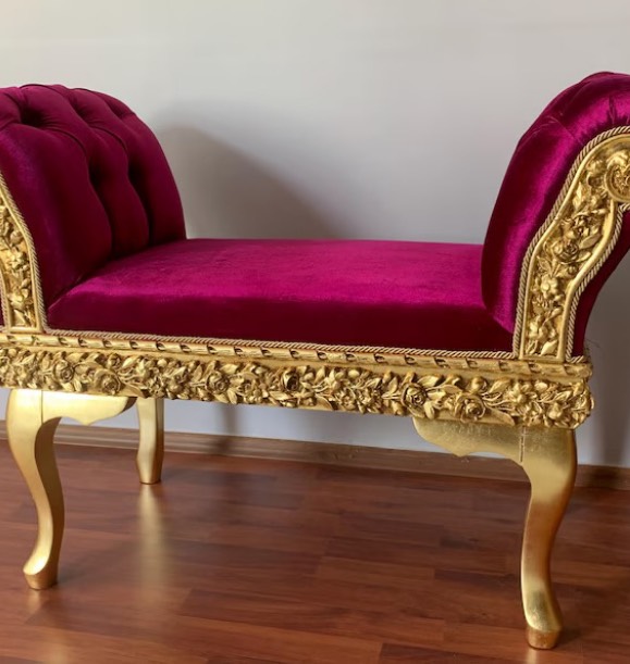 This exquisite velvet french throne will add a touch of classic elegance to your space. Use it as an office chair or a statement piece to elevate your decor. The throne exemplifies masterful artistry with its gold leaf gilding meticulously crafted by hand. The throne's plush velvet fabric further enhances it's regal appearance, ensuring you bring home not just furniture, but timeless charm.
